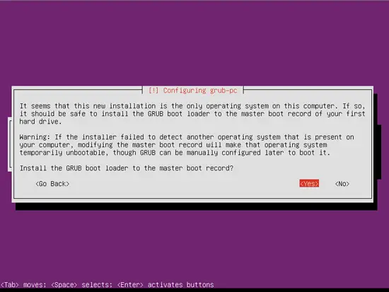 I'm having only one disk so I will install boot loader to master boot record. If you have multiple disks or RAID configured disks, you will have to dig the net a bit to find solution where to install boot loader.