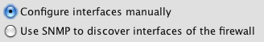 When creating a firewall in Firewall Builder you have a choice of configuring interfaces manually, or you can use SNMP discovery if you have SNMP enabled on your router and you have access to a Read-Only or Read-Write community string. For this example we are going to configure the router interfaces manually.