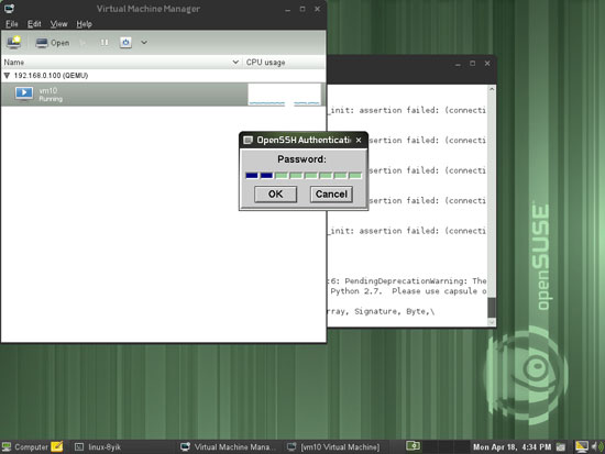 Afterwards type in the root password of the OpenSUSE 11.4 KVM host: