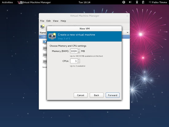Instead of creating a virtual machine from the command line, you can as well create it from the Fedora desktop using virt-manager (of course, the virtual machine will be created on the CentOS 6.3 Xen host - in case you ask yourself if virt-manager is able to create virtual machines on remote systems).