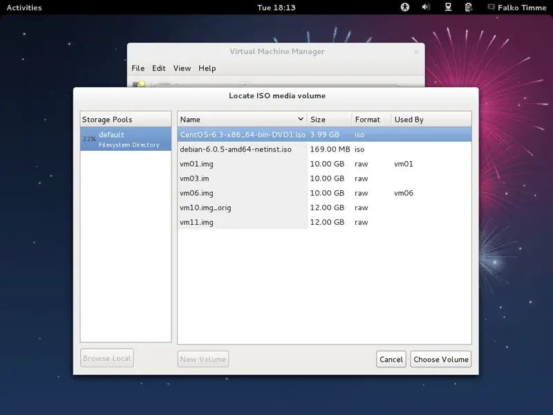 Select the CentOS-6.3-x86_64-bin-DVD1.iso image and click on Choose Volume: