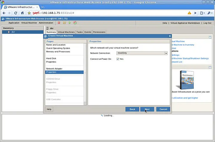 It might happens that VMware kicks you out after some time. If this happens, refresh your browser and log in again to finish the creation of the virtual machine.